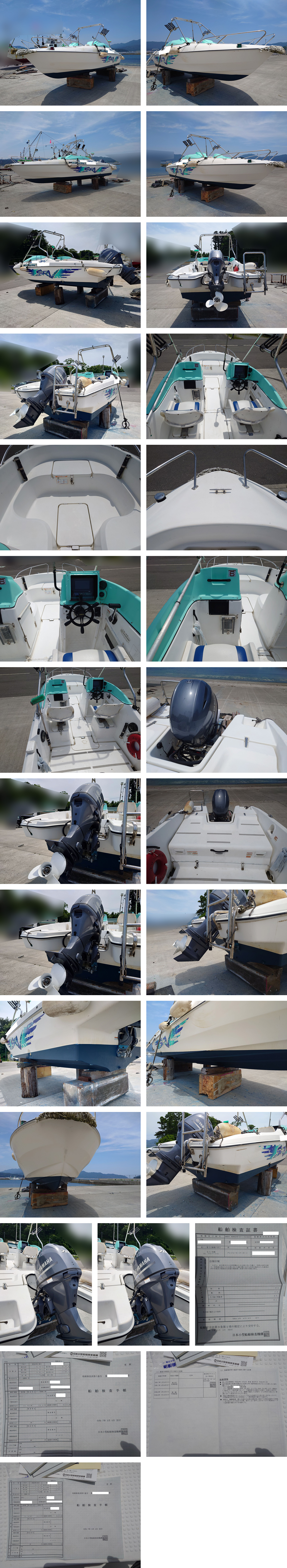 トーイングポール、ボートラックが設置され、燃料タンクは約50Lが備え付けしてあります。デッキ中央にイケスが設置してあります。